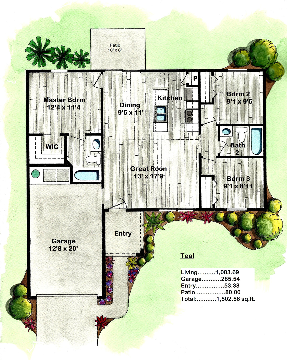 3 Bedroom, 2 bath, 1 car garage. 1502 sq/ft